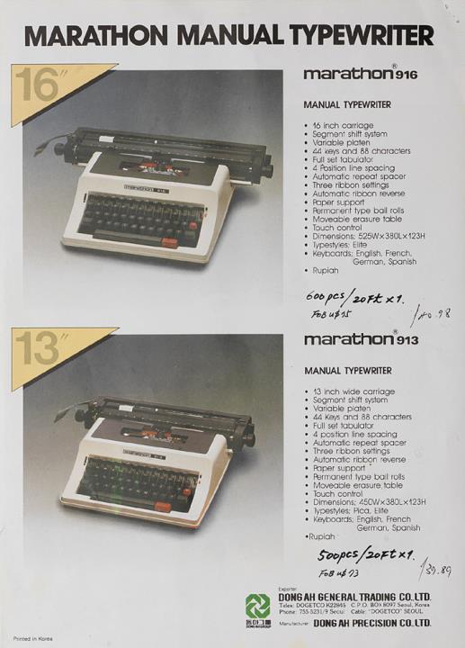 Prospekt für Schreibmaschine marathon 913