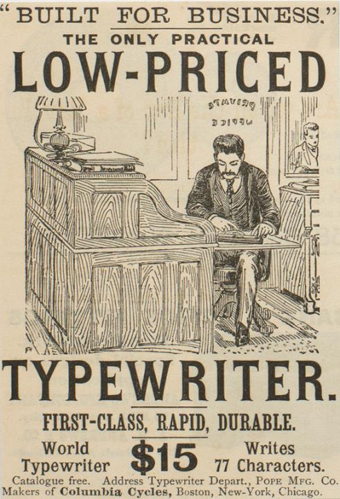Werbeanzeige für Schreibmaschine World monochrom