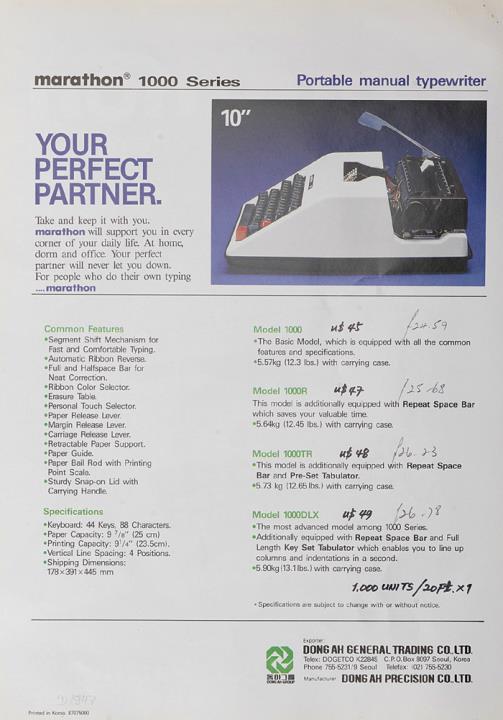 Prospekt für Schreibmaschine marathon 1000 Nr. 87075000