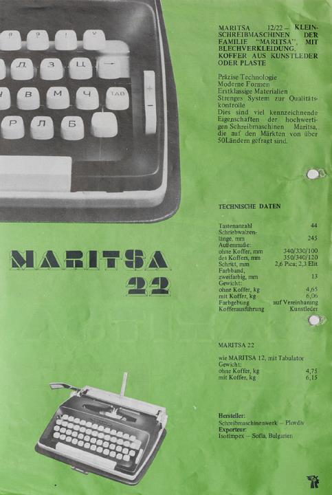 Prospekt für tragbare Schreibmaschine Maritsa 12/22