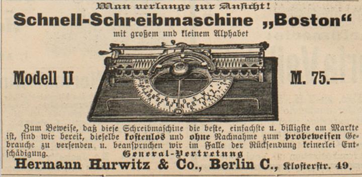 Schnell-Schreibmaschine Boston Modell II