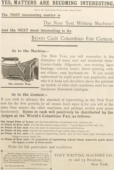 Yes, Matter are becoming Interesting [...] The New Yost Writing Machine