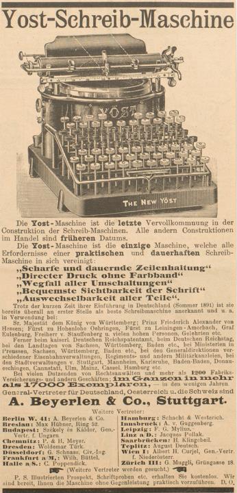 Werbeanzeige für Schreibmaschine Yost monochrom