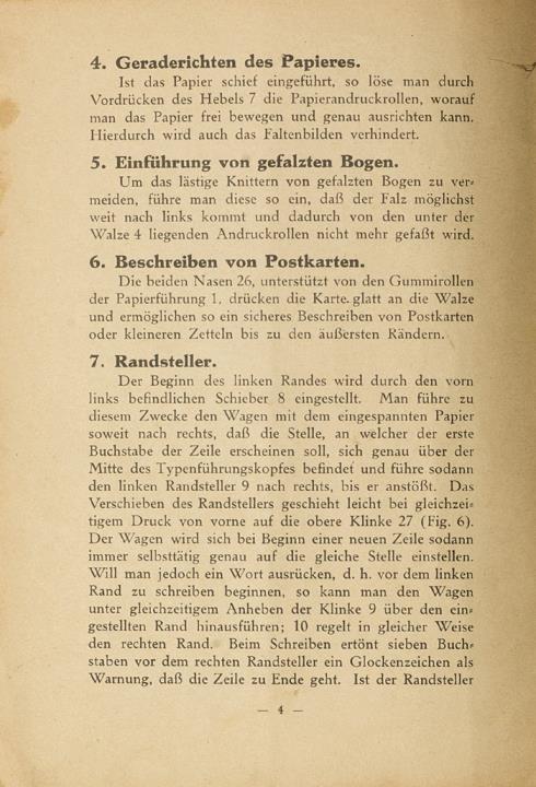 Gebrauchsanweisung der Mercedes-Schreibmaschine