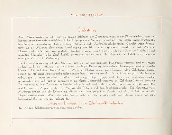 Bedienungsanleitung für Schreibmaschine Mercedes Elektra Nr. W.1206-2-11/28 H.S.
