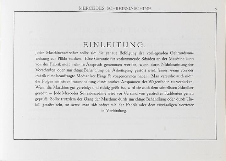 Bedienungsanleitung für Schreibmaschine Mercedes 5 Nr. W 1072 Nachdruck