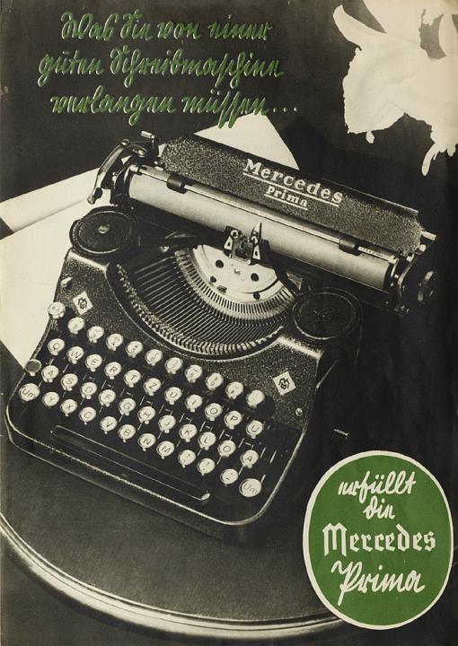 Next to literature on the history of technology, of the typewriter and the office, the Archive holds patent letters, textbooks and instruction manuals as well as historical postcards, letters, photographs and various kinds of advertising (leaflets and brochures, advertising stamps, newspaper ads, posters and signs, promotional gifts).