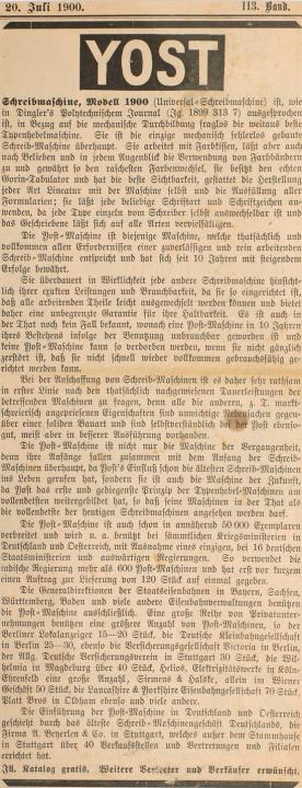 Werbeanzeige für Schreibmaschine Yost monochrom