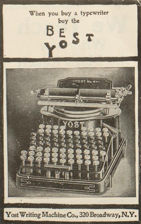 Werbeanzeige für Schreibmaschine Yost; auf Karton geklebt monochrom