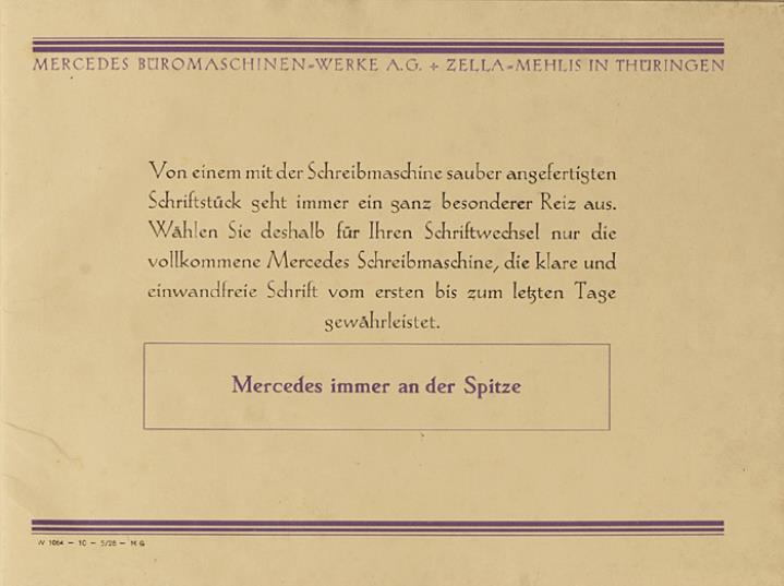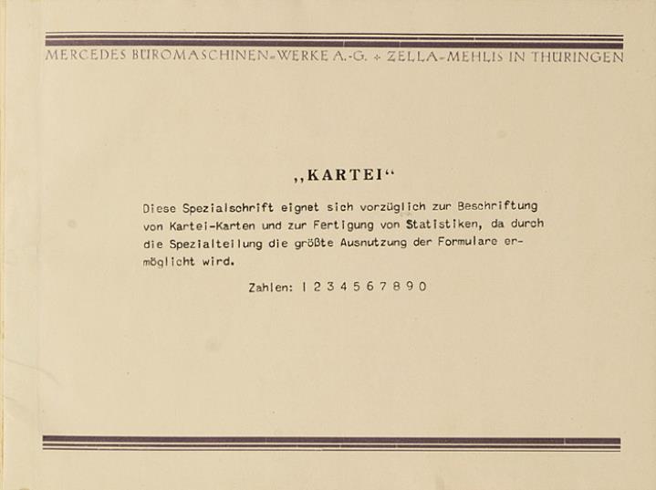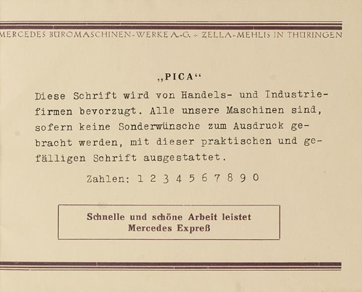 Schriftartenverzeichnis für Schreibmaschine Mercedes Nr. W1064-10-5/28-MG