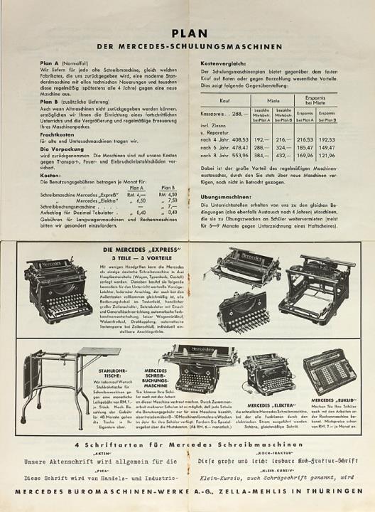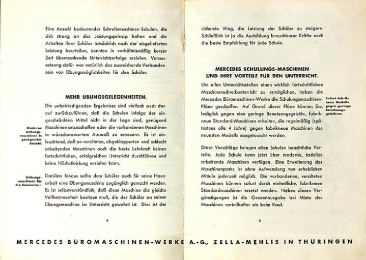 Informationsbroschüre zu Methoden des leistungsvollen Maschinenschreibens und Unterrichtshilfe mit Schreibmaschinen Mercedes