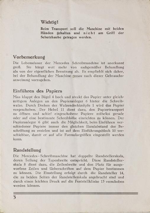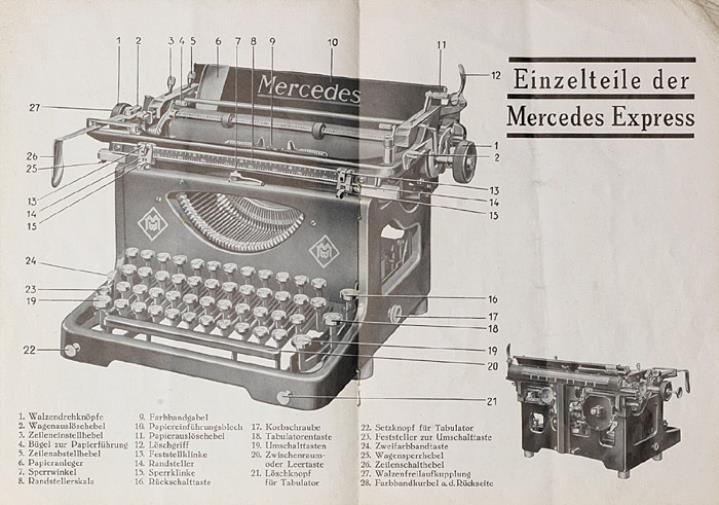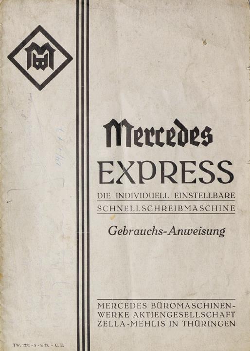 Bedienungsanleitung für Schreibmaschine Mercedes Express die individuell einstellbare Schnellschreibmaschine Nr. TW.1271-5-8.35.-C.E., zwei Exemplare (eines fotokopiert, gebunden)