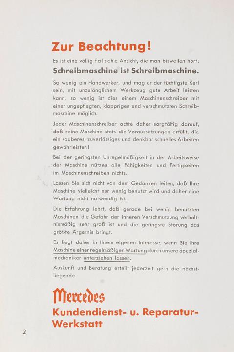 Bedienungsanleitung für Schreibmaschine Mercedes Selecta Nr. TW1527-15-11/36-A.D.