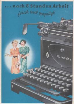 Faltprospekt für Schreibmaschine Mercedes Prima, Superba und Selecta [...] und Du hast einen treuen Mitarbeiter fürs Leben! Nr. W 1698.60.I38.A.D.