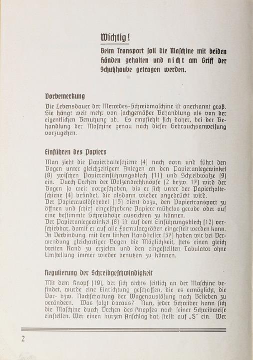 Bedienungsanleitung für Schreibmaschine Mercedes Express Nr. TW1512-10-9/37A.D.