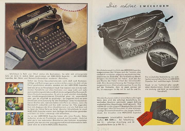 Faltprospekt für Schreibmaschine Mercedes Superba Nr. W1720.100.X.37.O.B.