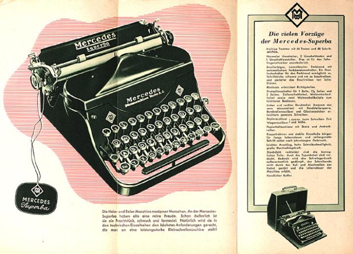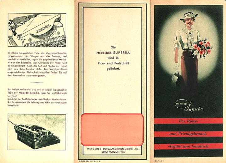 Faltprospekt für Schreibmaschine Mercedes Superba Für Reise- und Privatgebrauch elegant und handlich Nr. E.2055.200.VII.38.S.B.