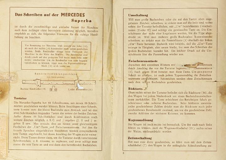 Mercedes Superba Kleinschreibmaschine Gebrauchsanweisung
