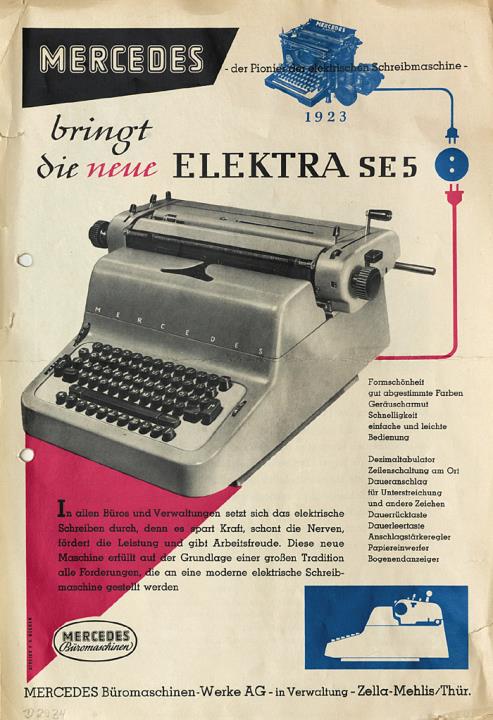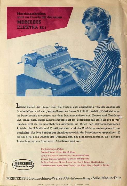 Faltprospekt für Schreibmaschine Mercedes Elektra SE 5 Nr. W2150