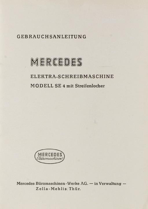Gebrauchsanleitung Mercedes Elektra-Schreibmaschine Modell SE 4 mit Streifenlocher