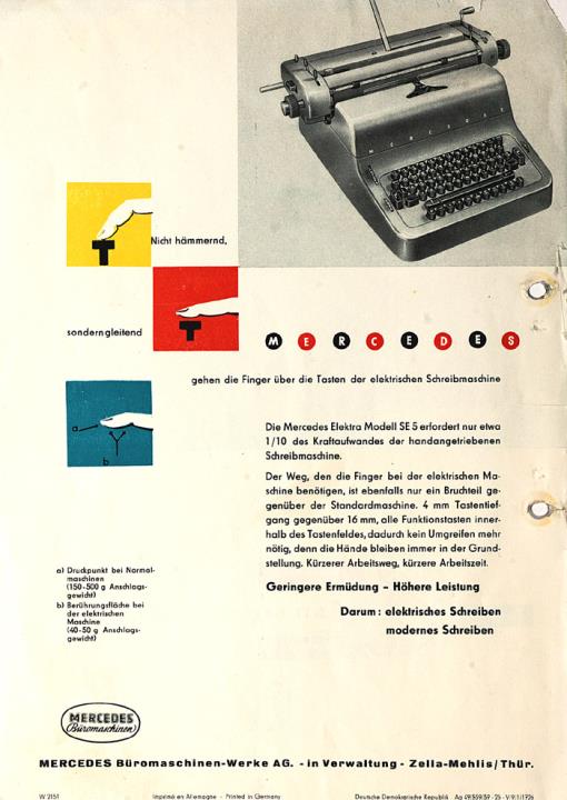 Prospekt für Schreibmaschine Mercedes Elektra SE5 Nr. W2151 Datum handschriftlich vermerkt