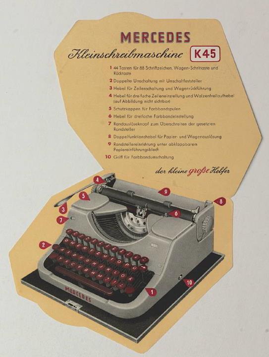 Faltprospekt in Form eines Schreibmaschinenkoffers für Schreibmaschine Mercedes K 45 Nr. 2136 III/29