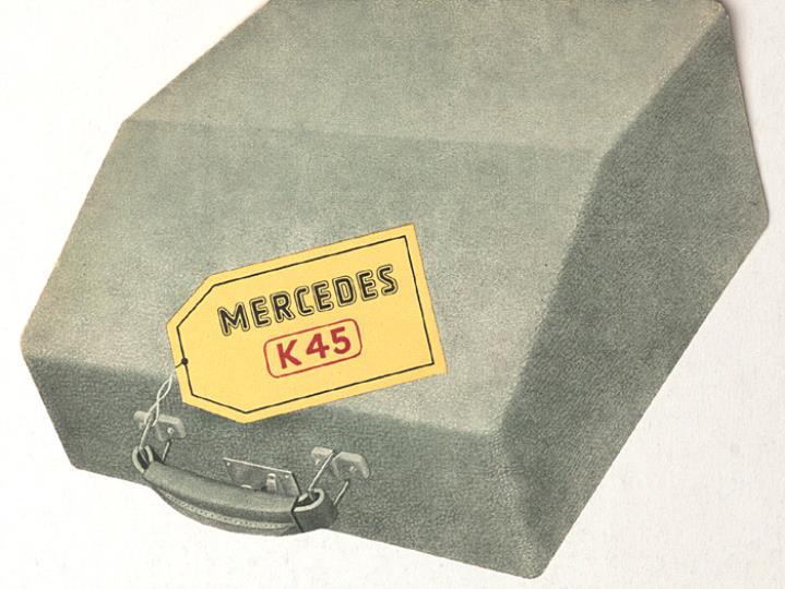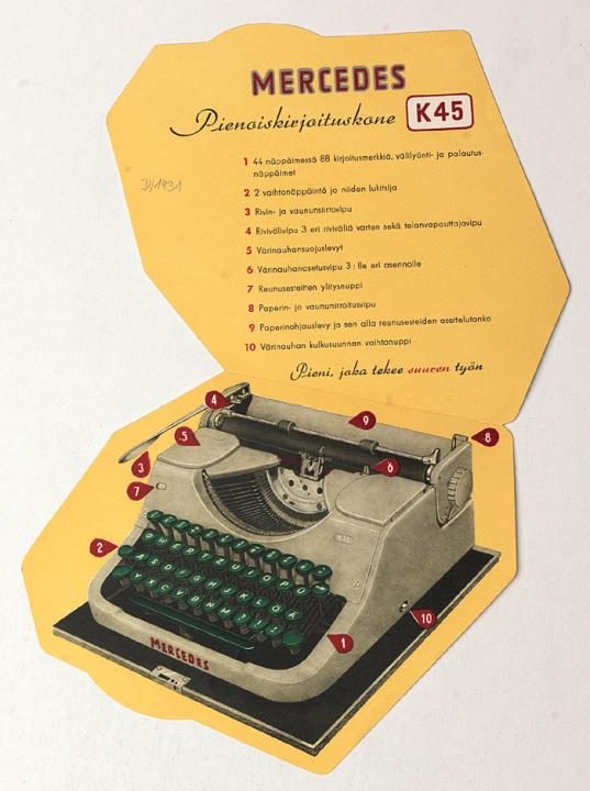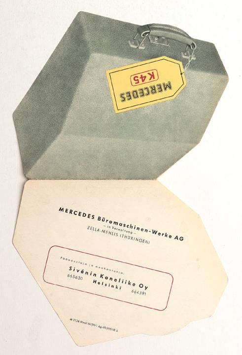 Faltprospekt in Form eines Schreibmaschinenkoffers für Schreibmaschine Mercedes K 45 Nr. W2136 (finn)