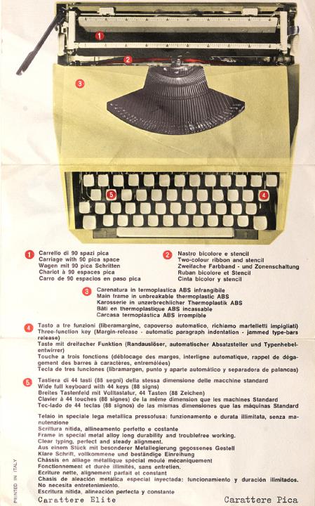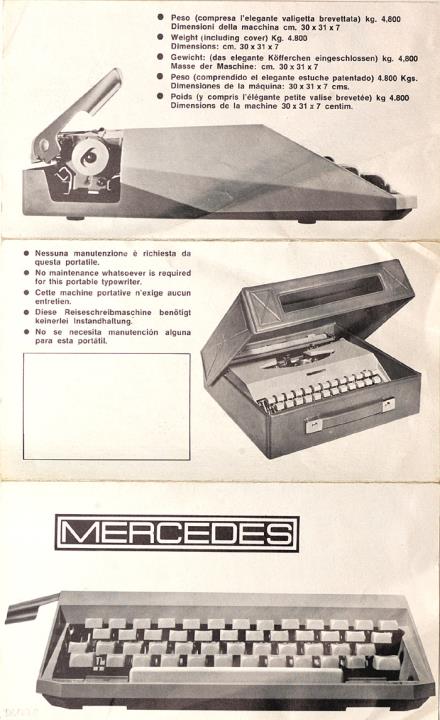 Faltprospekt fünfsprachig für tragbare Schreibmaschine Mercedes