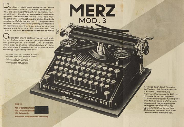 Faltprospekt für Schreibmaschine Merz 3 Nr. 1678-deutsch Grafik: Sperzel