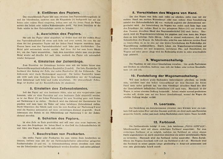 Bedienungsanleitung für Schreibmaschine Merz Simplex Nr. 1616