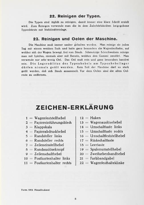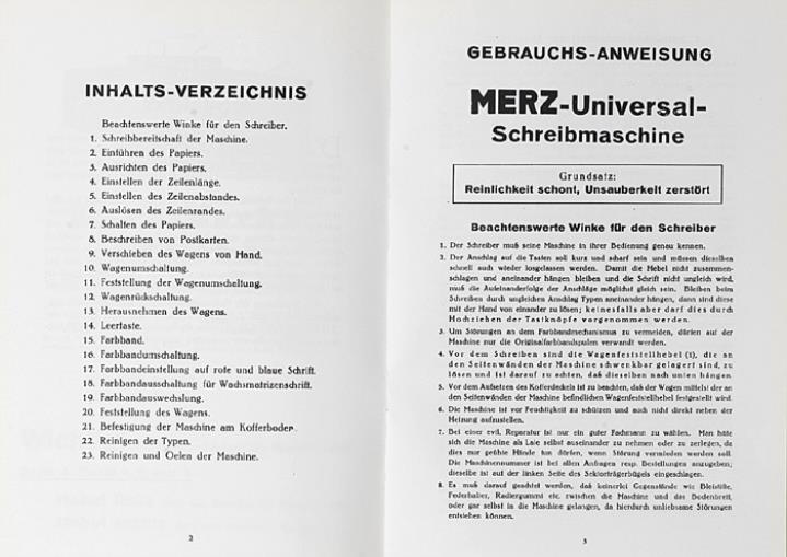 Bedienungsanleitung für Schreibmaschine Merz Universal Nr. 1912 - Nachdruck