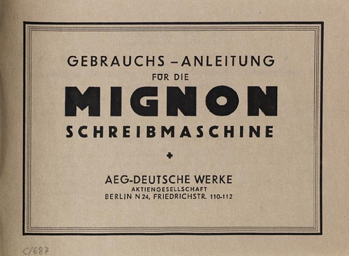 Gebrauchs-Anweisung für die Mignon Schreibmaschine