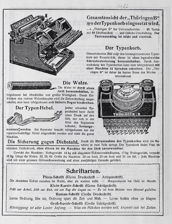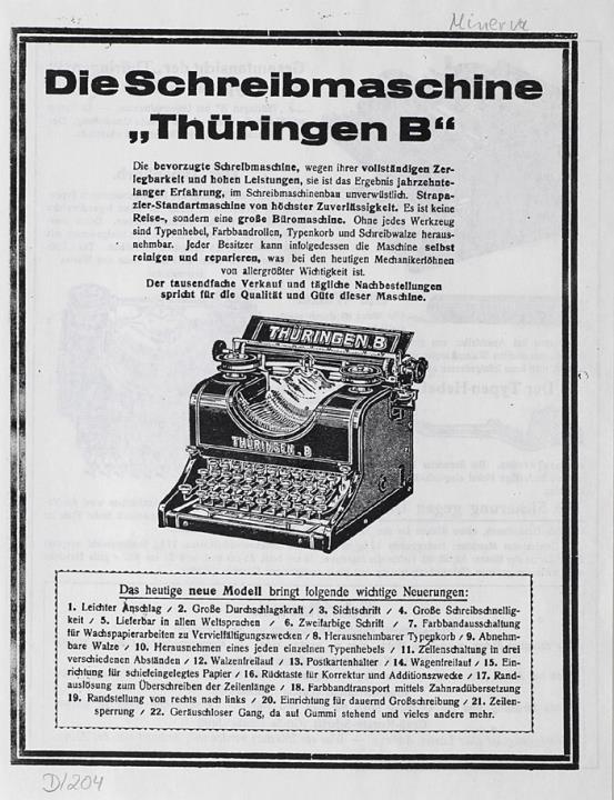 Prospekt für Schreibmaschine Thüringen B (Minerva) Fotokopie