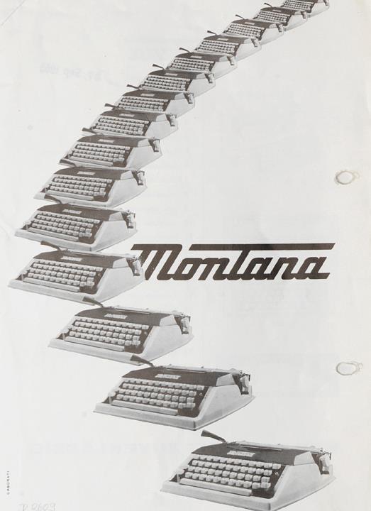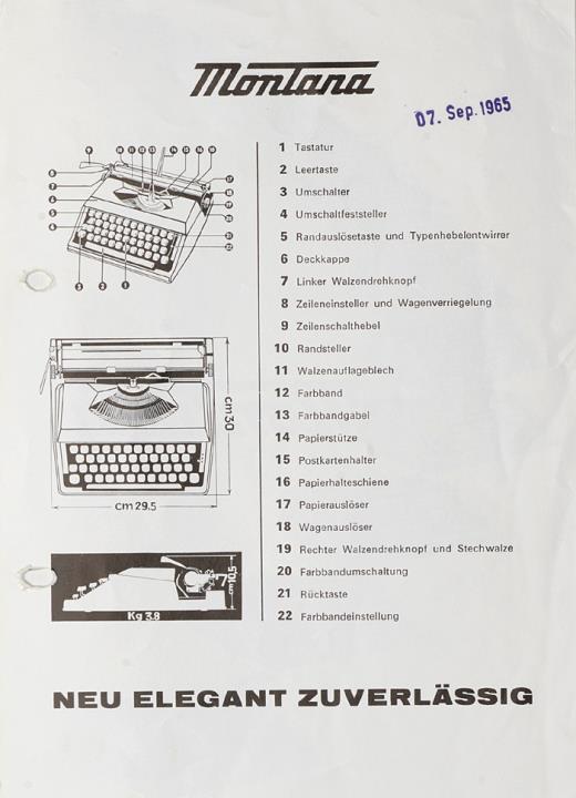 Prospekt für Schreibmaschine Montana mit Datumstempel versehen