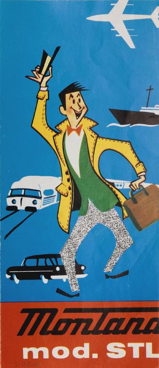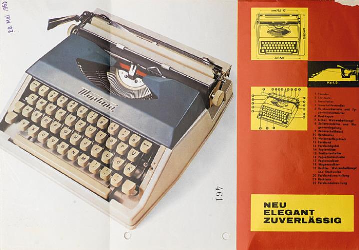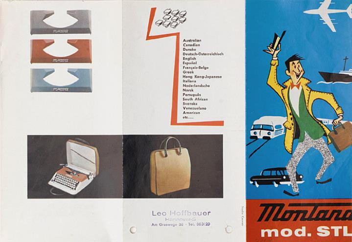 Faltprospekt für tragbare Schreibmaschine Montana STL mit Datumstempel versehen