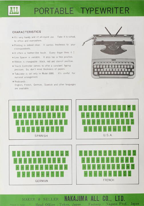 Prospekt für tragbare Schreibmaschine Nakajima All