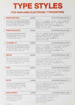 Schriftartenverzeichnis für elektronische Schreibmaschine Nakajima
