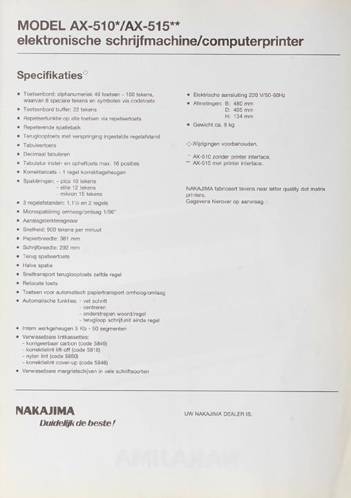 Prospekt für elektronische Schreibmaschine Nakajima AX-510