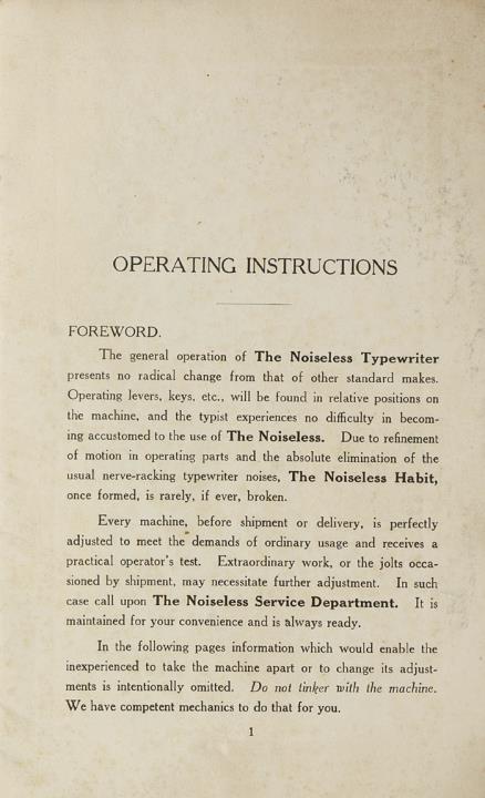 Operating Instructions The Noiseless Typewriter