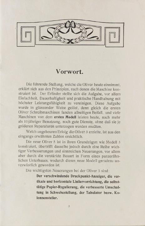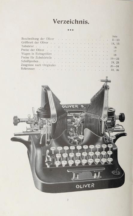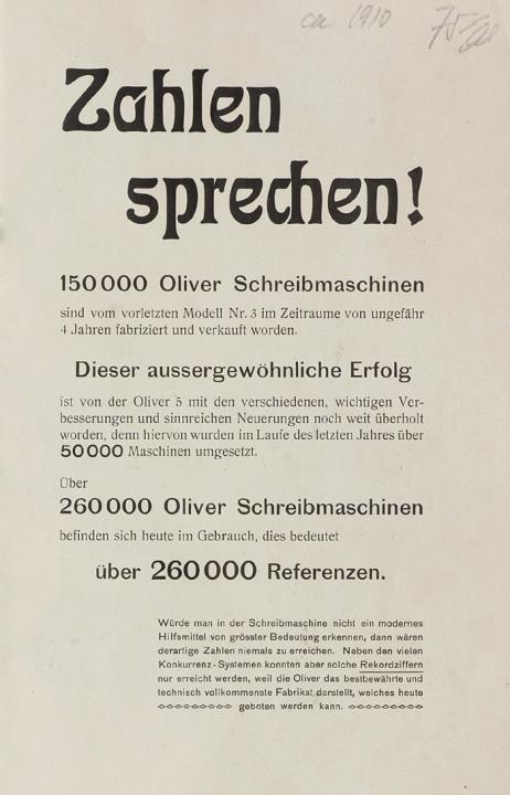 Prospekt für Schreibmaschine Oliver