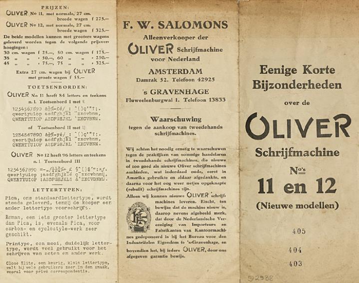 Faltprospekt für Schreibmaschine Oliver 11 und 12