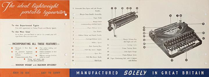 Faltprospekt für tragbare Schreibmaschine Oliver the British Typewriter