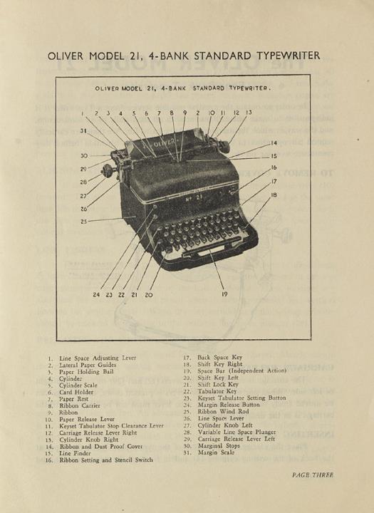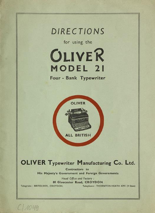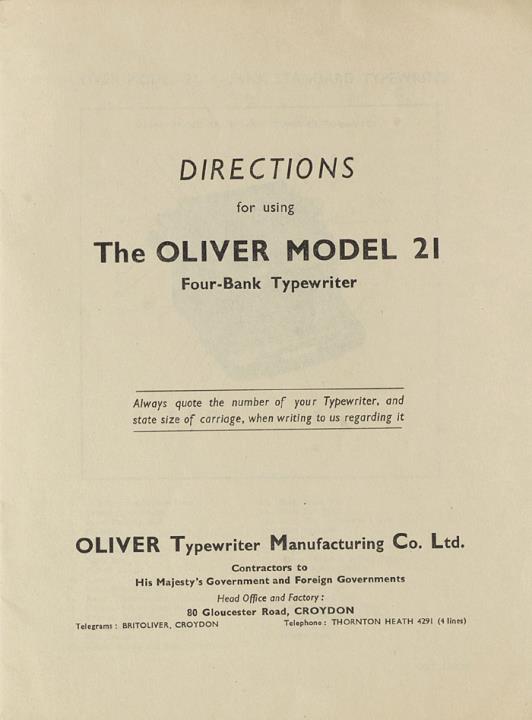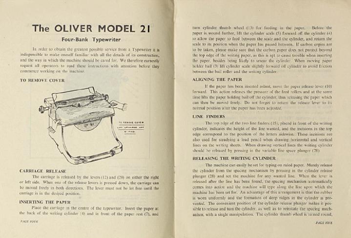 Directions for using the Oliver Model 21 Four-Bank Typewriter