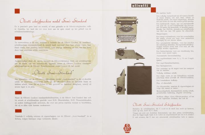 Next to literature on the history of technology, of the typewriter and the office, the Archive holds patent letters, textbooks and instruction manuals as well as historical postcards, letters, photographs and various kinds of advertising (leaflets and brochures, advertising stamps, newspaper ads, posters and signs, promotional gifts).