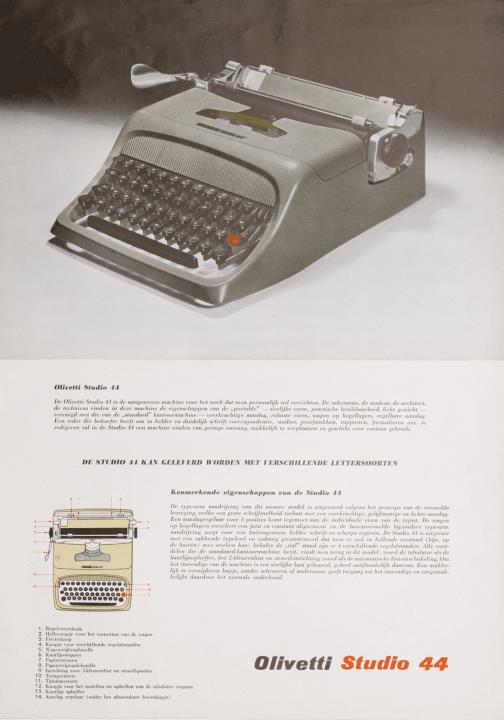 Faltprospekt für Schreibmaschine Olivetti Studio 44 Nr. 86.10.54