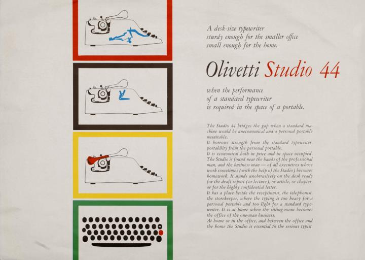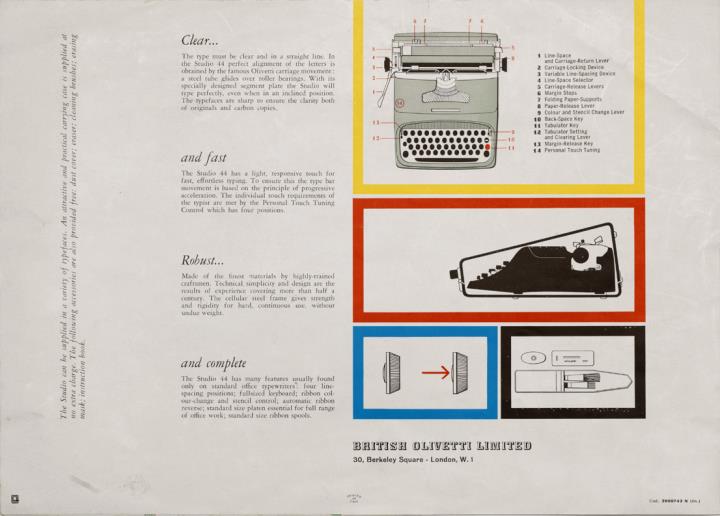 Faltprospekt für Schreibmaschine Olivetti Studio 44 Nr. 3900743 N (INr.)