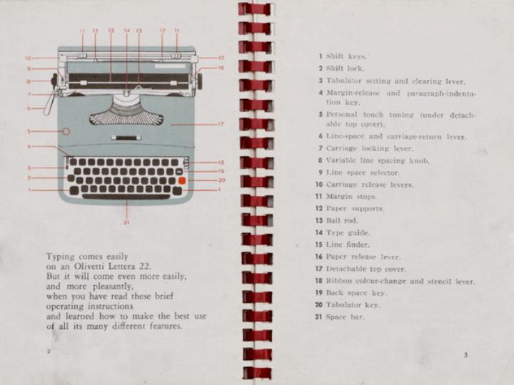 Instructions for the use of the Olivetti Lettera 22 typewriter