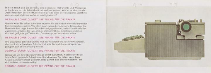 Faltprospekt für Schreibmaschine Olivetti Praxis 48 Datum handschriftlich vermerkt