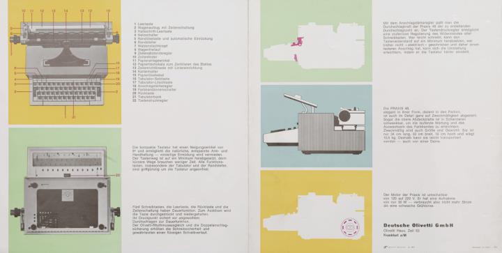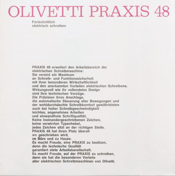 Faltprospekt für Schreibmaschine Olivetti Praxis 48 Nr. 2-68