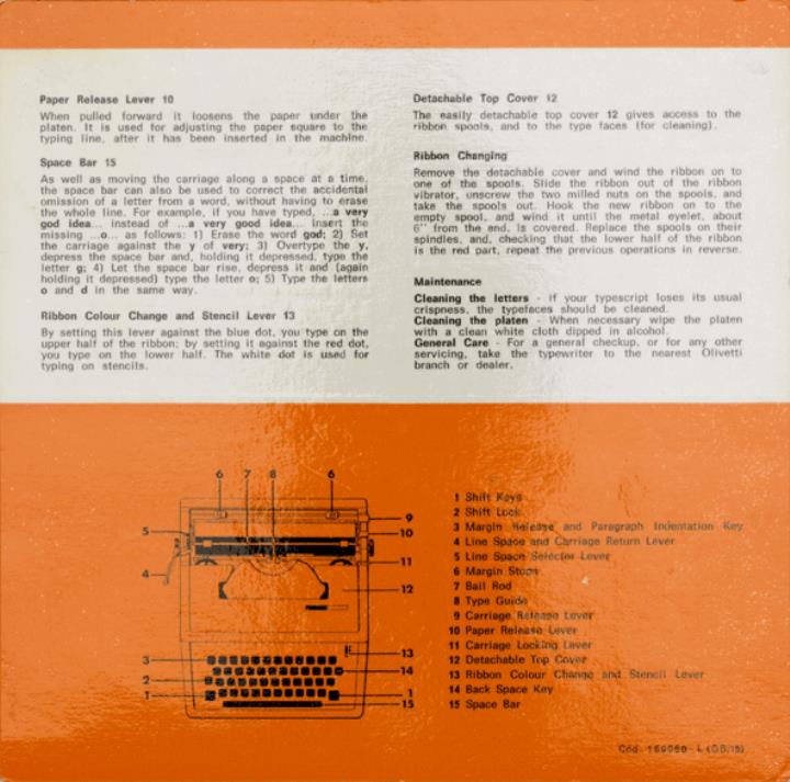 Bedienungsanleitung für Schreibmaschine Olivetti Dora Nr. 159060-L (GB/15)